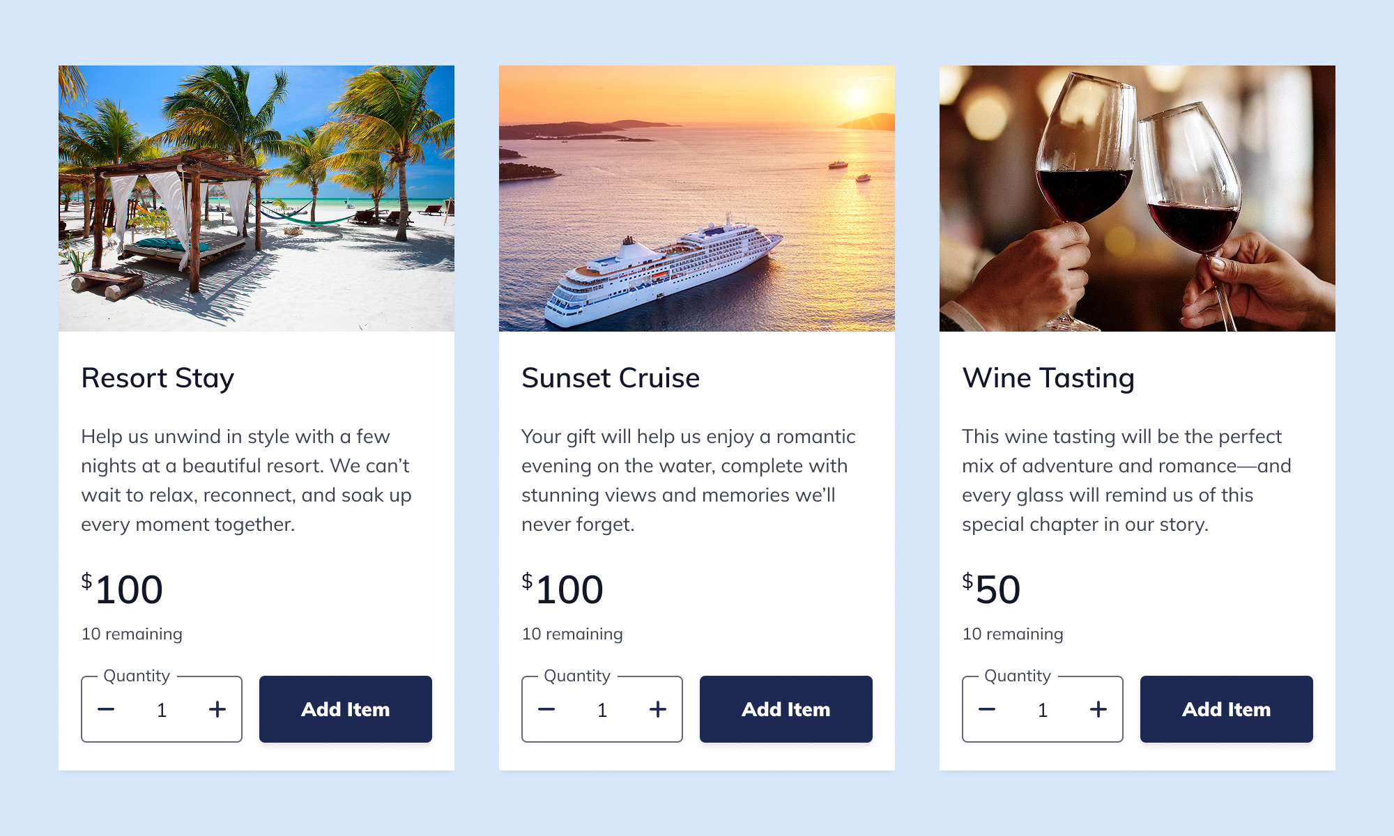 Add custom gift items with photos, descriptions, and price points